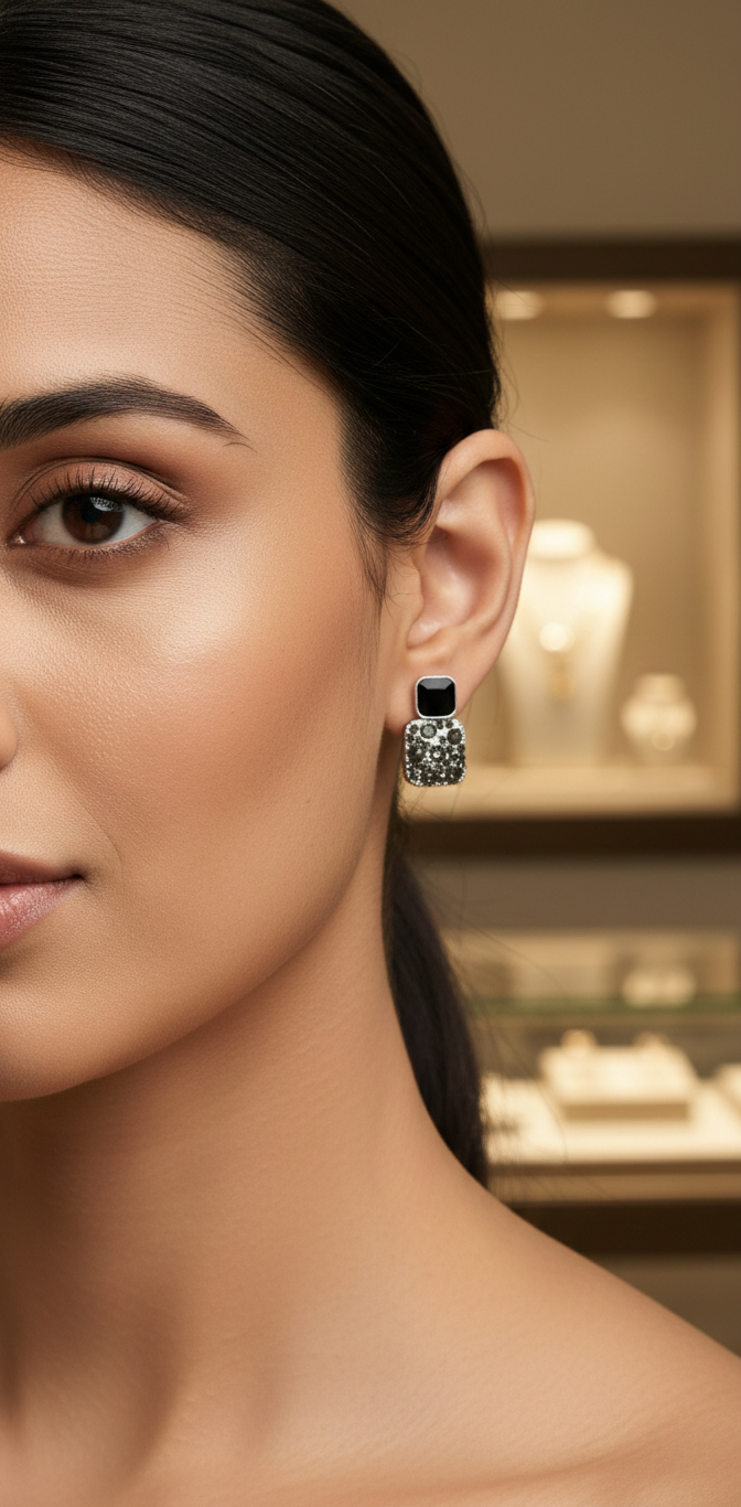 Make a statement with these stylish Black Anti-Tarnish Earrings, designed for women and girls who love modern elegance with everyday comfort. The deep black finish adds a bold, classy touch, while the premium anti-tarnish coating keeps the earrings looking new and shiny for longer. Perfectly balanced between fashion and functionality, these earrings are ideal for both casual days and special celebrations.