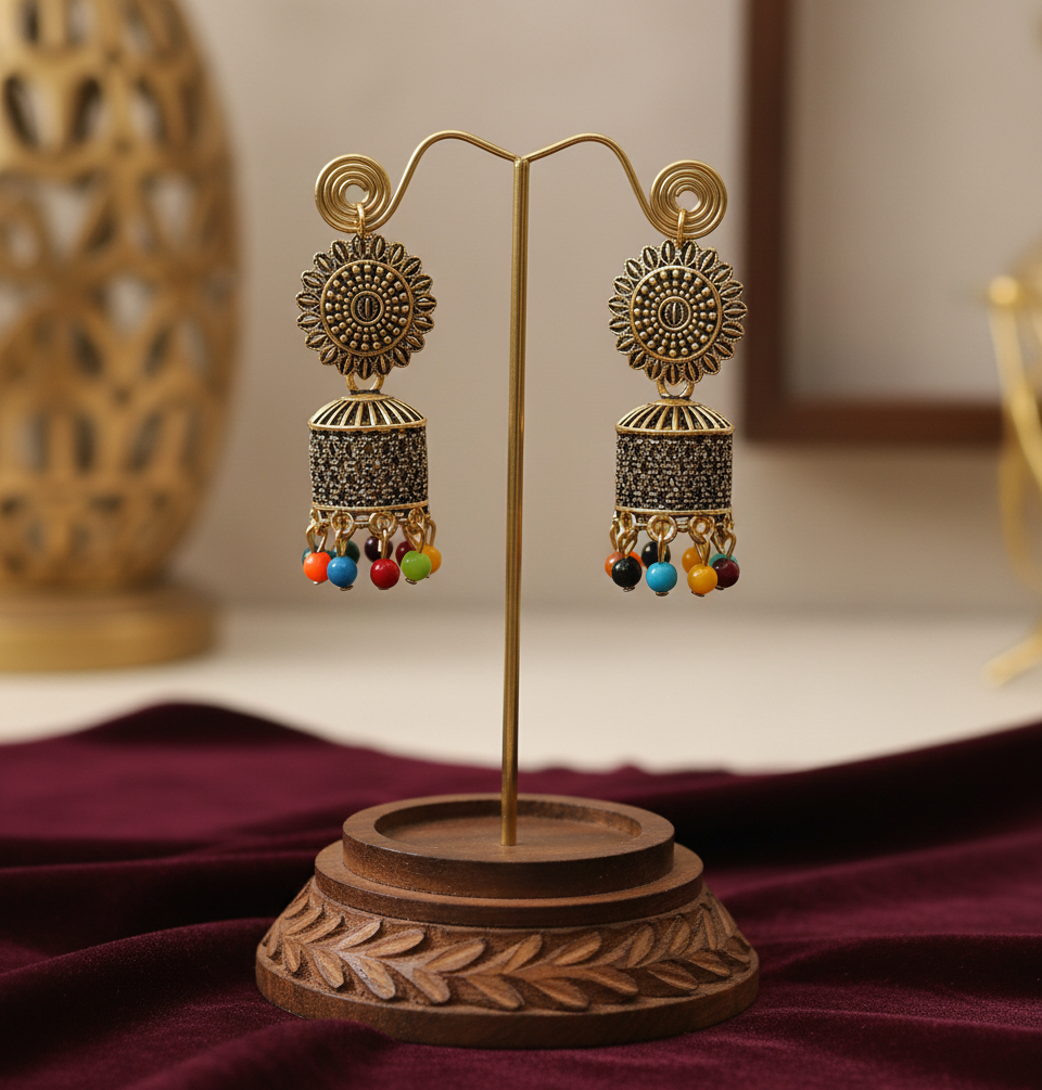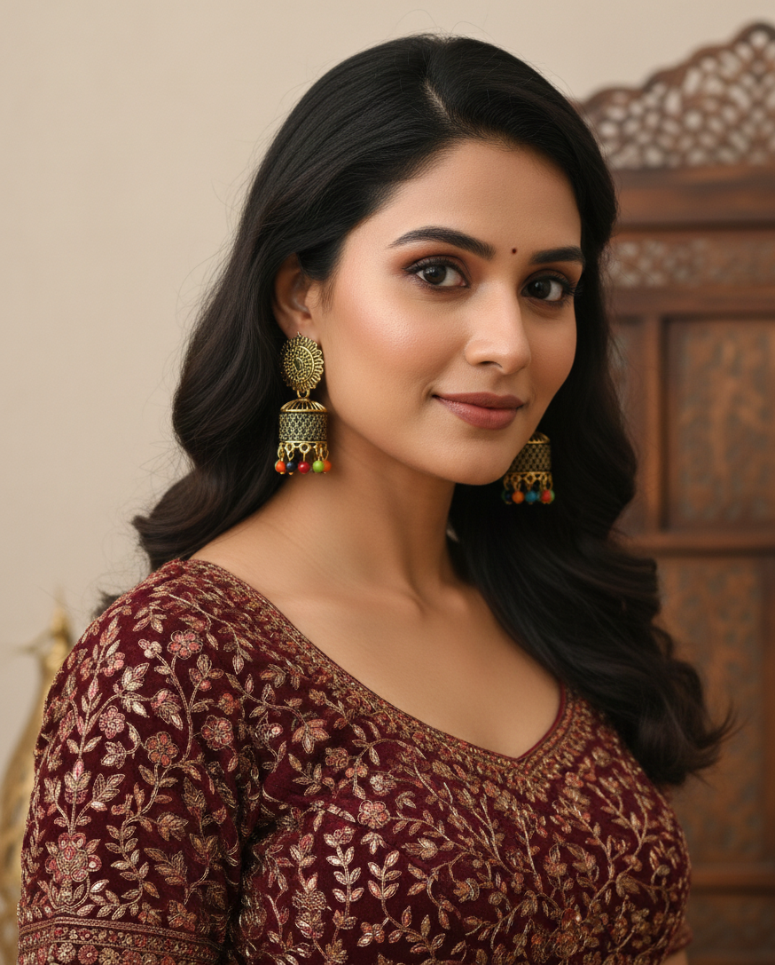 Carefully crafted with fine detailing and a smooth finish, these earrings are lightweight and comfortable, allowing you to wear them for long hours without any discomfort. They pair effortlessly with sarees, kurtis, lehengas, and salwar suits, while also complementing Indo-western and fusion outfits. Made from skin-friendly materials, they are safe for regular use and designed to retain their shine with proper care.