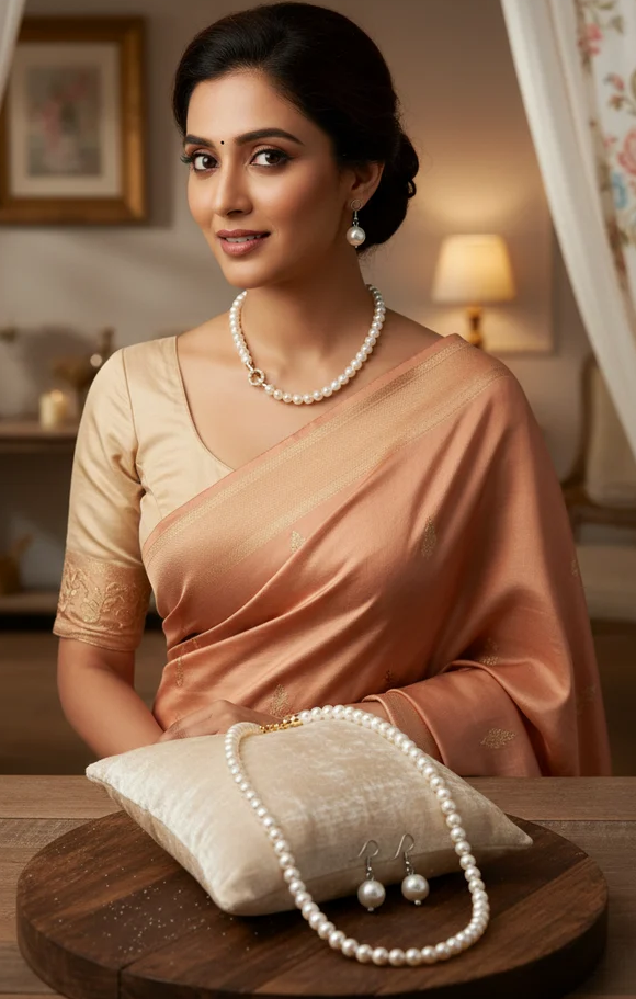 Elevate your elegance with this White Pearl Necklace and Earrings Set, designed to add a touch of timeless beauty to your look. Crafted with lustrous white pearls, this jewellery set reflects grace, purity, and sophistication. The classic design makes it a perfect choice for women who love subtle yet luxurious accessories.The necklace sits beautifully on the neckline, while the matching earrings enhance your facial features with a soft, radiant glow. Whether you are dressing up for a wedding, festive celebration, party, or a special occasion, this pearl set complements both traditional and modern outfits effortlessly.