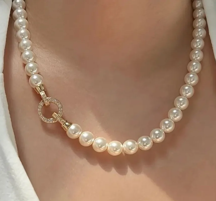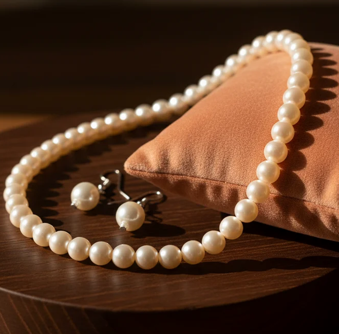 Classic White Pearl Necklace and Earrings Set, lightweight, graceful, and ideal for everyday elegance.